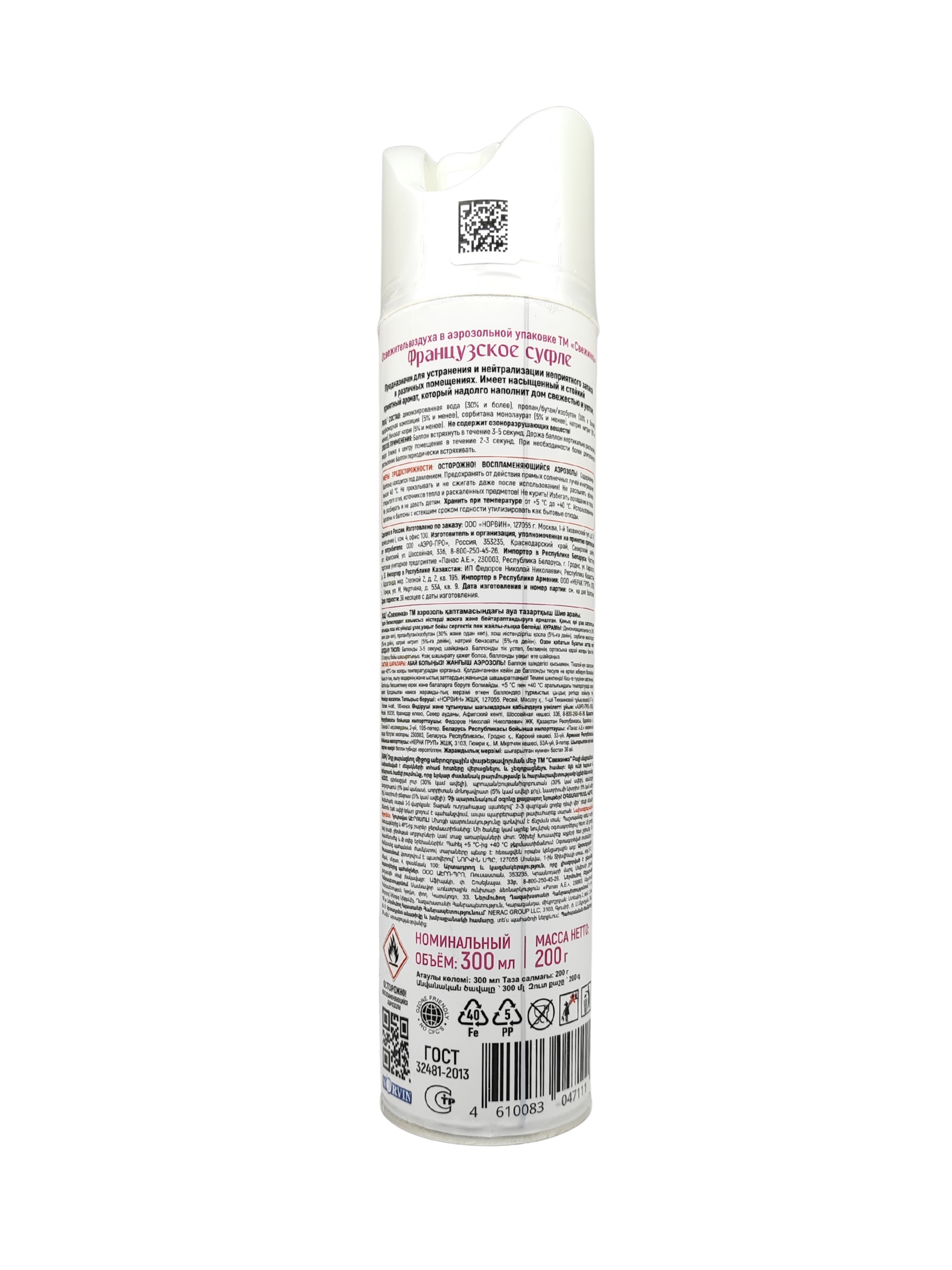 Освежитель воздуха аэрозоль "Свежинка" Французское суфле, 300мл 1х12шт