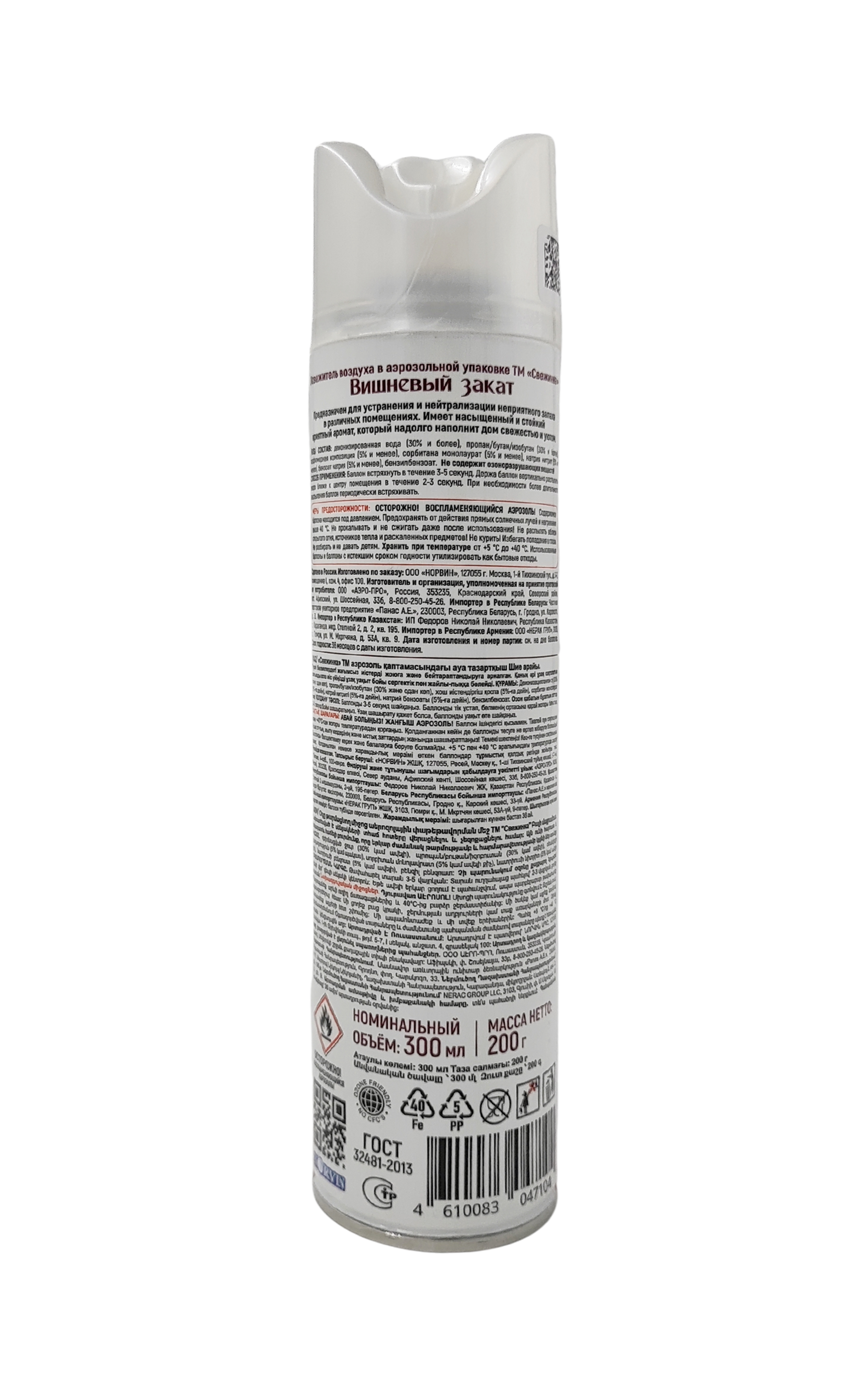Освежитель воздуха аэрозоль "Свежинка" Вишневый закат, 300мл 1х12шт 4610083047104 12 шт