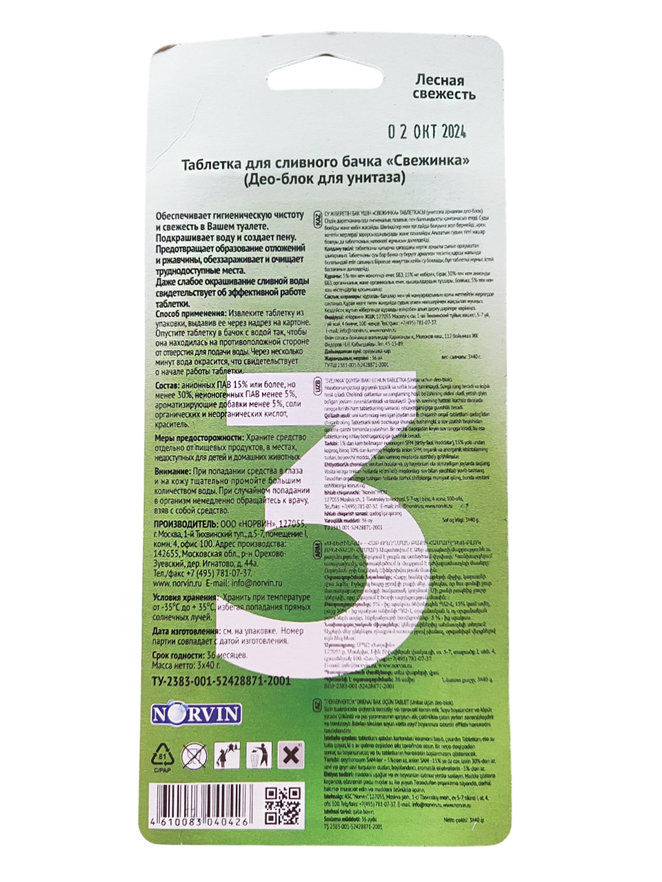 Таблетка 3 шт. для сливного бачка "Свежинка" 3*40 гр. хвоя, 1х12 шт
