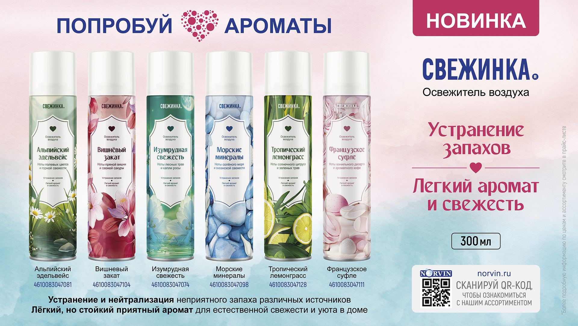 Свежинка, свежесть, свежее дыхание – эти ассоциации объединяются в едином названии «Свежинка» одного из двух наших брендов, ве- дущего свою историю с 2004 года. Именно свежесть и чистоту несут в дом производимые нами средства бытовой химии. С самого начала работы на рынке компания «NORVIN» выбрала наиболее оптимальный вариант: свое собственное направление. Им стало производство део блоков для унитаза. Прошло достаточно времени, пока нам удалось убедить людей в том, что специализированные средства ухода гораздо безопаснее и эффективнее подручных чистящих средств. |